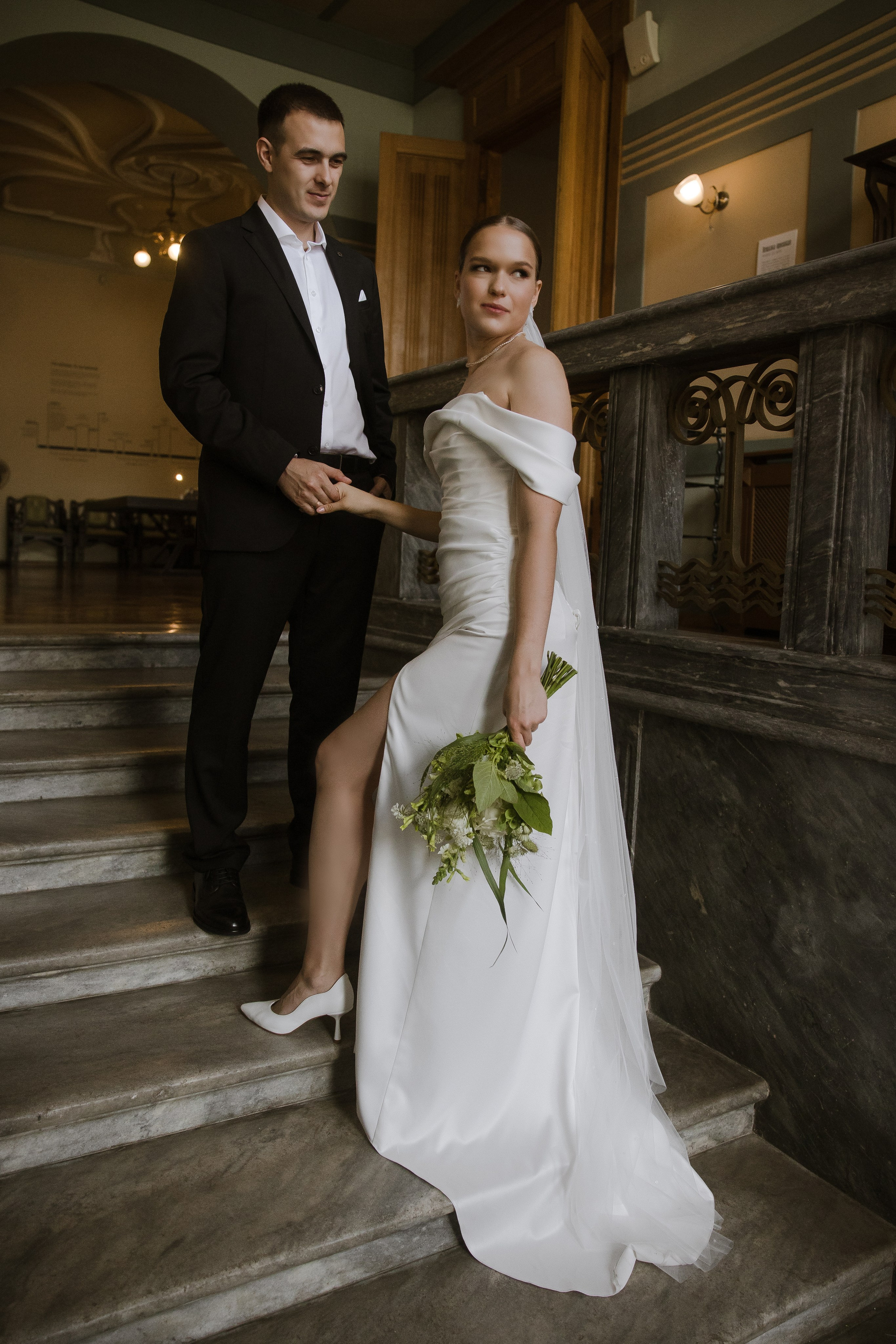 Мы долго выбирали локацию, чтобы она подошла под образы пары. Музей подошел идеально!